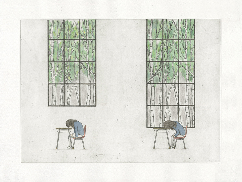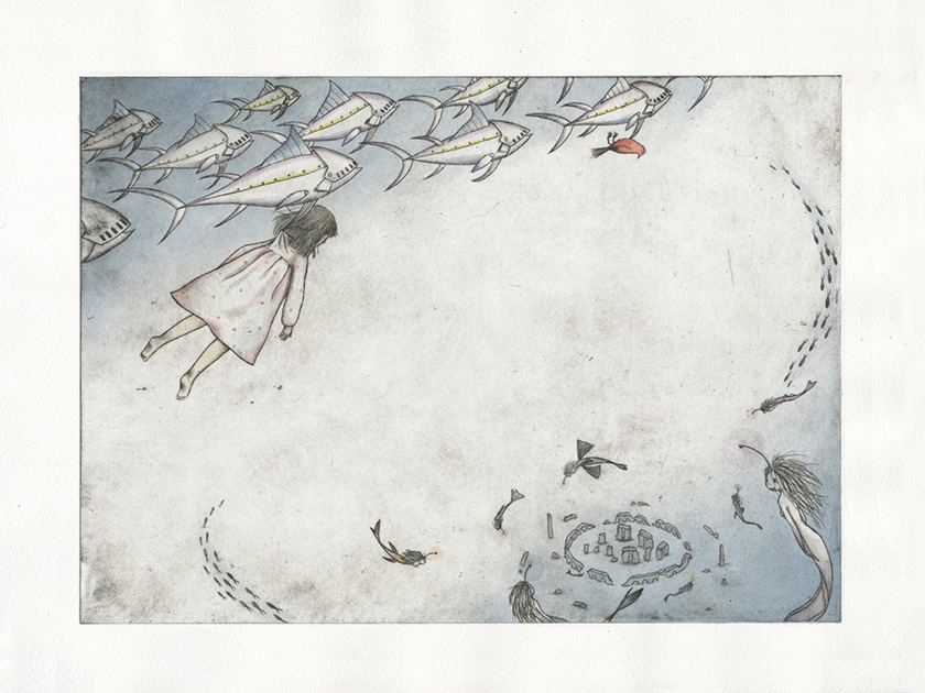 Drypoint & Watercolour